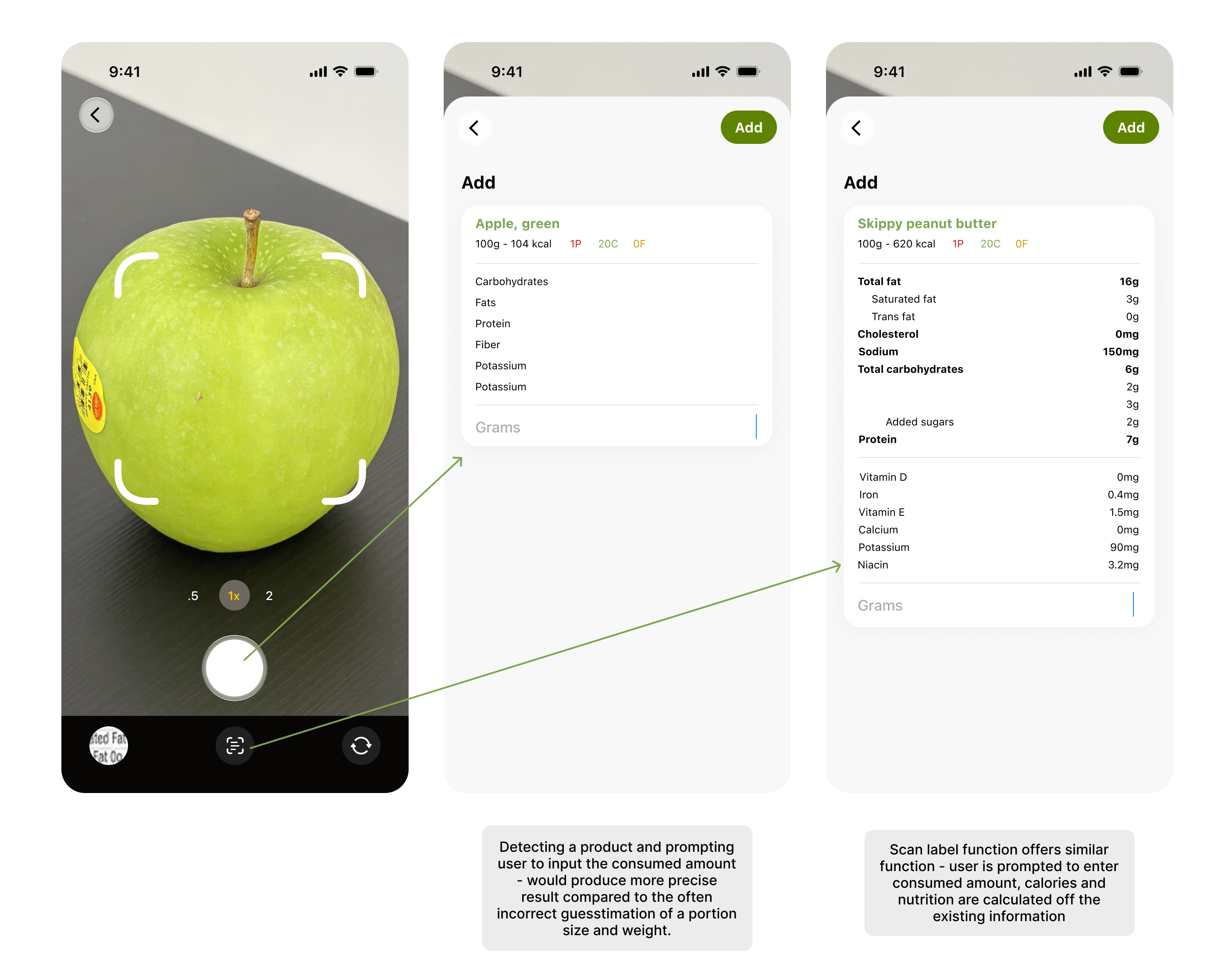 Photo scanning does have a legitimate use though: capturing nutrition labels and calculating the consumed amount and nutritional input based on the product's official data.